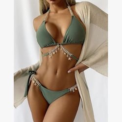 Halter Glitter Rhinestone Brazilian Bikini Set 2 Piece Lace-up Crystal Bathing Suit Jeweled$25Whittier, CA