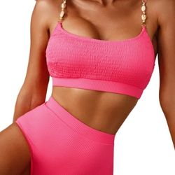 Bikini Two Piece Swimsuit Shirred Solid Color High Waisted Bathing Suits for Women Shell Strap Bikini Set$20Whittier, CA