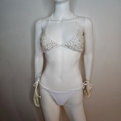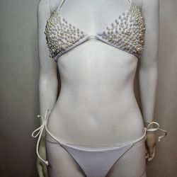 NEW All White Faux Pearl 2 Piece Swimsuit Bikini Triangle Top Size M$55Los Angeles, CA
