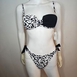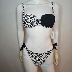 NWT Mermaids Swimwear Two Tone 2 Piece Bikini Blk/White Size S Adj Straps Push Up$55Los Angeles, CA