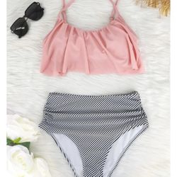 Womens Swimsuits Striped Falbala High Waisted Two Piece Bikini Set$8Hacienda Heights, CA