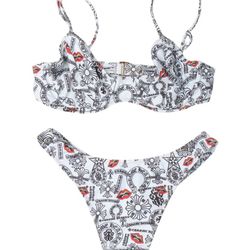 Marble Print Ring Linked Bikini Swimsuit With Beach Skirt$25Whittier, CA