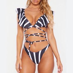 Black/White Striped Front Frill Bikini$15Whittier, CA