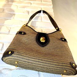 Designer Eric Javits Black Leather And Gold Woven Shoulder Bag$90La Habra Heights, CA