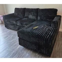 Black Sectional Sofa With Ottoman In Corduroy Fabric $749Long Beach, CA