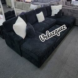 ✅️✅️3 pc Black color✅️ corduroy fabric sectional sofa with double storage chaise and pop up sleep area in center✅️✅️✅️$598Norwalk, CA