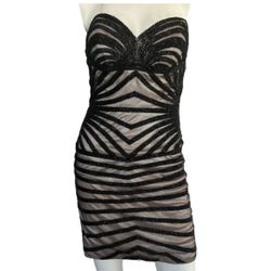 Atria Couture Nude Mini Dress With Black Beaded Embellished Overlay Size 6$70Norwalk, CA