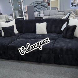 ✅️✅️3 pc black corduroy fabric sectional sofa with USB plugs rounded arms with chaise and storage ottoman✅️✅️$364Downey, CA
