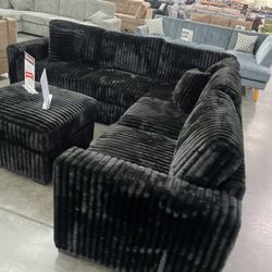 2-pc Sectional Sofa Black Fur-Like Corduroy Brand New $499Los Angeles, CA