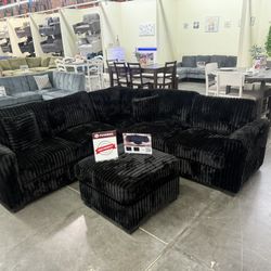 Black Corduroy Sectional Sofa With Ottoman ✅ $475 No Tax$475Downey, CA