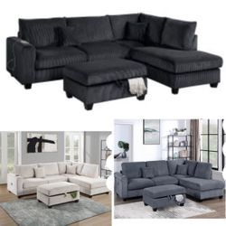 Sectional SofaChaise With Ottoman Storage USB Available I Ivory, Gray,Dark Corduroy,Gray,Black 106"X76" $459Long Beach, CA