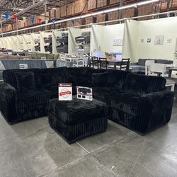 ✅️✅️4 pc black corduroy fabric upholstered sectional sofa with ottoman✅️$425South Gate, CA