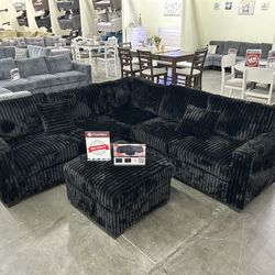 New! Black Sectional Sofa And Ottoman, Black Couch, Black Corduroy Sectional. L-Shaped Sofa, Couch, Sectionals, Black Sofa, Black Sectional,Plush Sofa$529Fullerton, CA