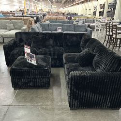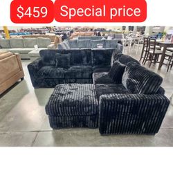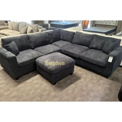 ✅️✅️4 pc black corduroy fabric upholstered sectional sofa with ottoman✅️$425El Monte, CA