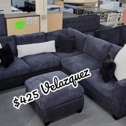 ✅on Sale $490 No Tax 4-pc Sectional Sofa With Ottoman Black Corduroy Brand New$490Downey, CA