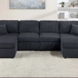 New! REVERSIBLE Large Sectional Sofa And Ottoman, Reversible Chaise Couch, Sectional, U-shaped Sofa, Sectionals Sofas, Couch,Black Sectional,Chenille $799Brea, CA