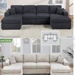 Ivory ,black ,fog color corduroy sectional sofa with ottoman 💥 BIG SALE$469Gardena, CA