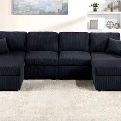 On Sale‼️U Shaped Sectional Sofa Black Corduroy ✅$399 No Tax$399Bellflower, CA