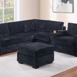 Stunning 4-pc Sectional Sofa With Ottoman Black Corduroy ✅529 No Tax We Deliver$529Bellflower, CA
