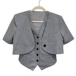 High-end Customized Gray Plaid Wool Cropped Blazer New$100West Hollywood, CA