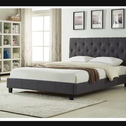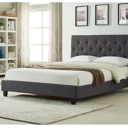 Brand New In Box Full Size Dark Grey Linen Upholstered Bed With Mattress. Assembly Required, We Can Deliver, Cama Con Colchon.$320Long Beach, CA