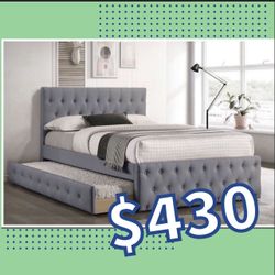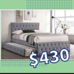 New In Box FULL BED W/TRUNDLE-LIGHT GREY BURLAP And 2 Mattresses.$450Long Beach, CA