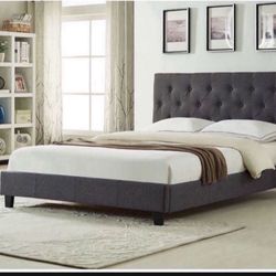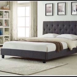 Brand New In Box Queen Size Dark Grey Linen Upholstered Bed With Mattress. Assembly Required, We Can Deliver, Cama Con Colchon.$350Lakewood, CA