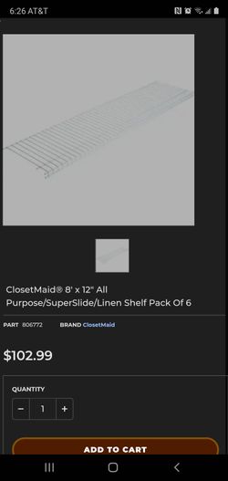 ClosetMaid® 8' x 12" All Purpose/SuperSlide/Linen Shelf Pack Of 6 PART 806772 BRAND ClosetMaid$40City of Industry, CA
