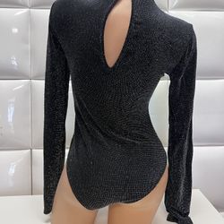 Women Top-long Sleeve Bodysuit- Black With Rhinestones -Large-USED-$10-talla Grande Usado$10Fullerton, CA