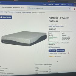 Marbella Queen Memory Foam Mattress $350Placentia, CA