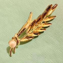 Vintage Lisner Faux Pearls Rhinestones Leaves Round Gold Tone Brooch 1 7/8" D$8Buena Park, CA