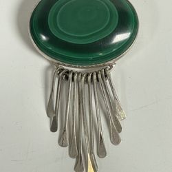 Vintage Mexican AIS Sterling Silver and Malachite Brooch with 11 Dangles ~ 32gr $95Irvine, CA