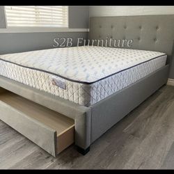Queen Grey Tufted Bed W Ortho Mattress $339Torrance, CA