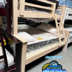 Twin Full Natural Bunk Bed With Mattresses Colchones Nuevos Camas $1,299Rosemead, CA