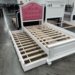 Twin Twin Size White Pink Trundle Bed W Ortho Mattress $499Arcadia, CA