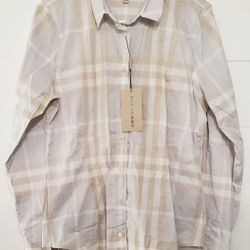 NWT BURBERRY LONDON WOMANS SHIRT STONE /WHITE SIZE LARGE $159Los Angeles, CA