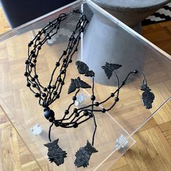 Black glass multi strand bakelite Owls, Butterfly’s, and Parrot necklace$35West Hollywood, CA