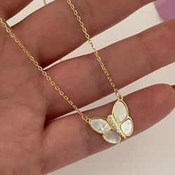 Preowned, solid gold18k, butterfly necklace light gold color with chain white color, 6/7grames$475Irvine, CA