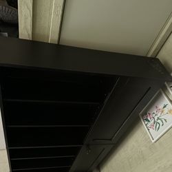 Black cabinet shelf with locked area with a key. dvd’s movies, knick knacks $25Hermosa Beach, CA