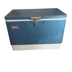Vintage 1977 XL 89 Quart Coleman Ice Blue Steel Belted Metal Cooler 28”$150Long Beach, CA