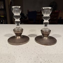 Vintage Pair Frank M. Whiting 6 1/2" Sterling Candle Holders 210 Glass Inserts$100Westminster, CA