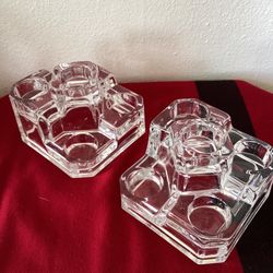 Vintage - PAIR - Crystal Clear Pressed Glass "Sunflower" Design - Taper Candle Holders - 1Pair Available $15Los Angeles, CA