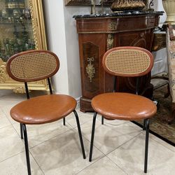 Pair of Beautiful Modern Faux Leather Rattan Cane Oval Backrest & Metal Legs Dining Chairs🌷 75 Each$75Los Angeles, CA