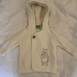 Cream Hooded Baby Cardigan with Winnie the Pooh embroidery. NWOT. Sherpa hood$20Corona Dl Mar, CA