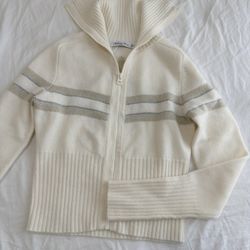 Cream Zip-Up Knit Cardigan â Ribbed Collar, Long Sleeve, Soft Winter Sweater$598Los Angeles, CA