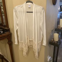 LUCY LOVE Women White Crochet Lace Fringe Asymmetrical Open Cardigan Size Small$30Huntington Beach, CA