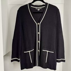 II SISTERS Black And Cream Long Open Cardigan Sweater Coat Sz M$14Redondo Beach, CA