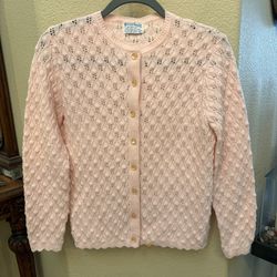 Vintage BRITISH VOGUE Wintuk Pink Acrylic Button Grannycore Cardigan Size S/M$35Huntington Beach, CA