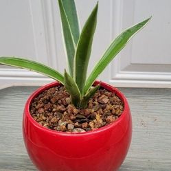 Cactus Verigated Agave, Eye Catching Red Ceramic Round Pot With Redish Variety Rocks$20Downey, CA