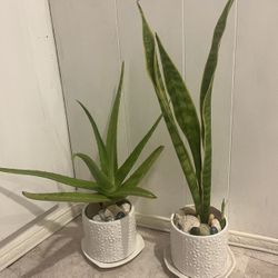 Homegrown Snake plant And Aloe Vera In White Ceramic Pots$28Rosemead, CA
